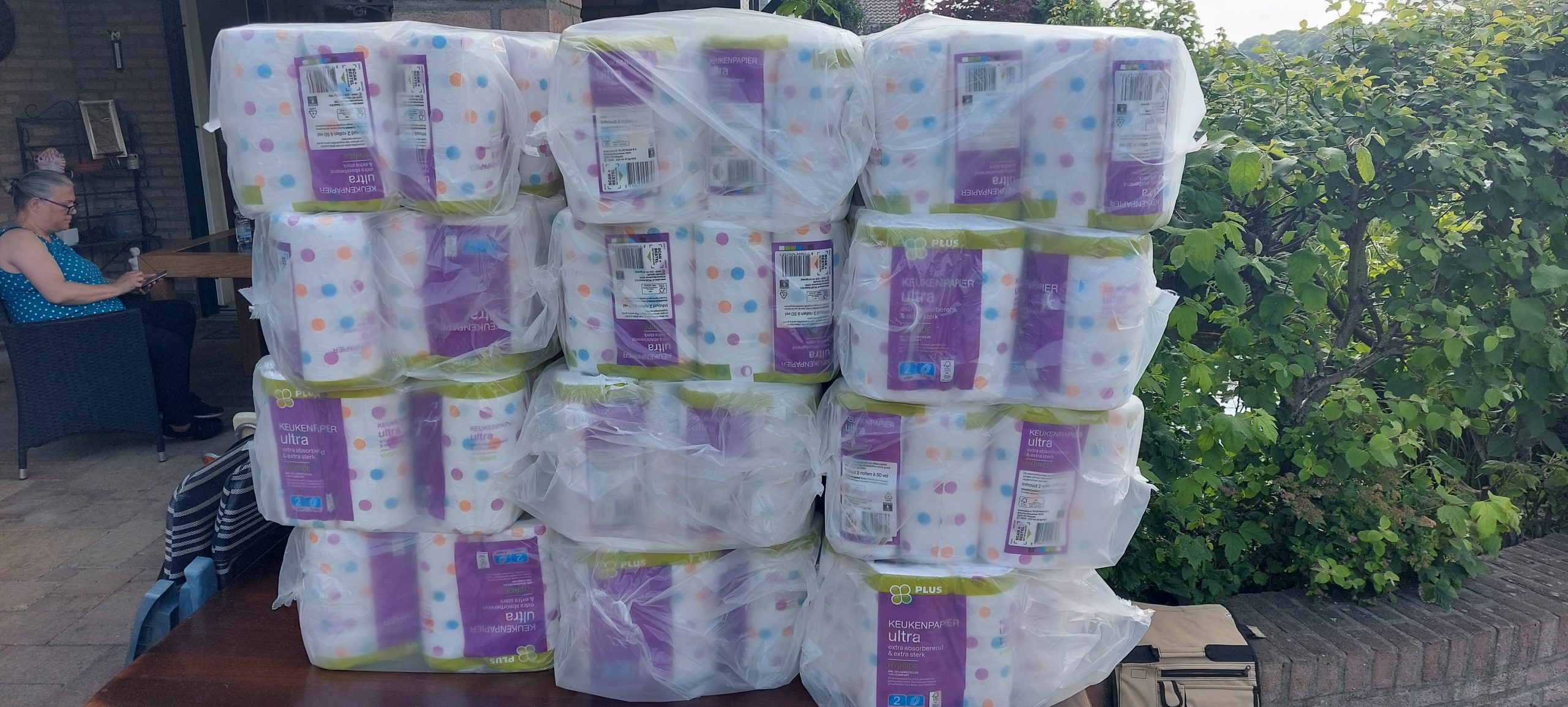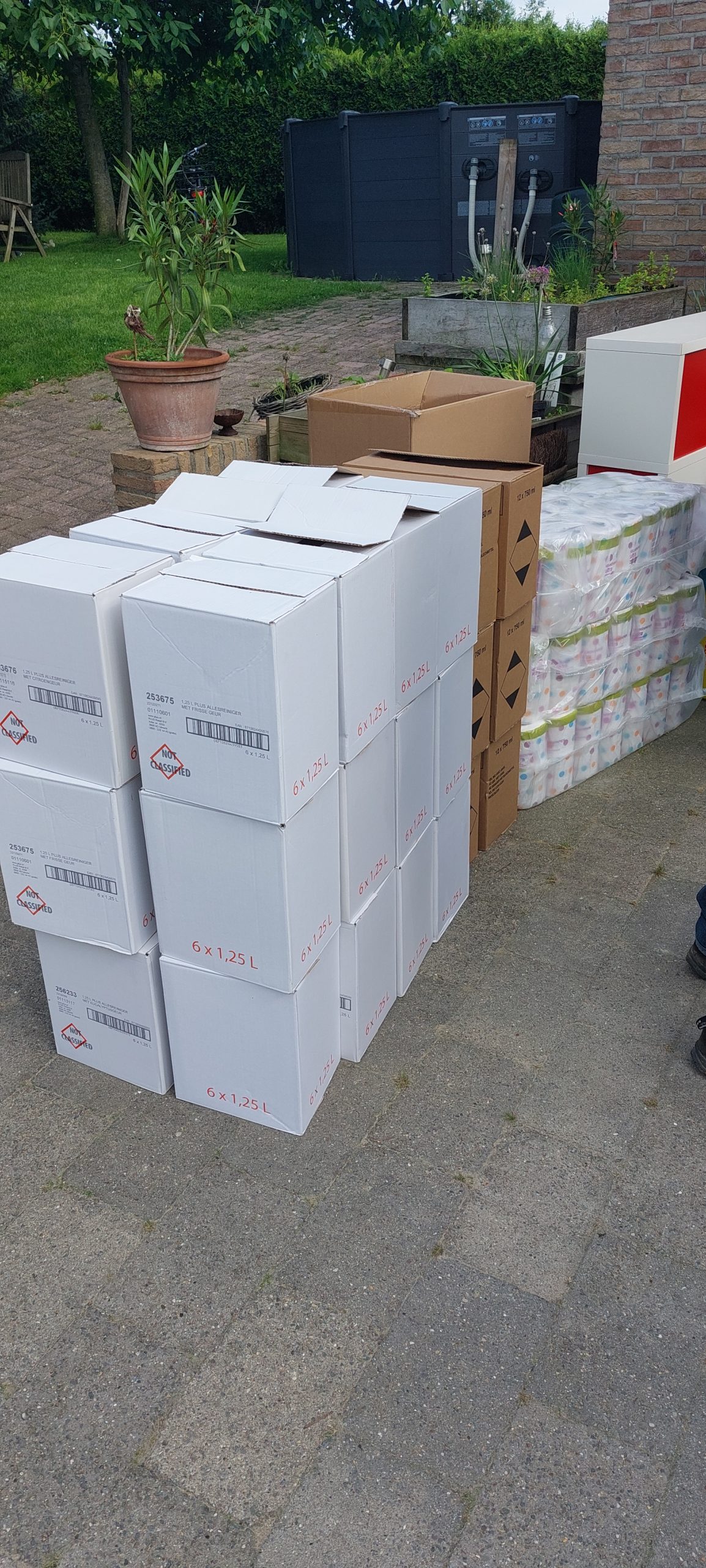 Tussen de bedrijven door hadden we het NOS-jeugdjournaal op bezoek en gelijktijdig werden enorme mooie doneeracties geregeld. Hartelijk dank aan alle mensen die spullen hebben verzameld en afgeleverd, aan Plus Kaumanns voor de donatie van schoonmaakartikelen, Maasland Agri voor de donatie van kippenvoer welke gelijk in Schin op Geul werd uitgedeeld. Gamma Noord-Oost, Stichting wijkbeheer Vrieheide, de action uit Nuth, Bouwmaat Heerlen, Gamma Brunssum en Jongeneel Sittard. Door deze bedrijven werden heel veel direct noodzakelijk goederen gedoneerd. Deze spullen werden in de loop van de avond al gebruikt en uitgedeeld in Brommelen. Morgen weer een nieuwe dag, waarbij wederom heel veel nieuwe spullen in aantocht zijn, waaronder 500 verhuisdozen, puinzakken, bigbags, trekkers, bezems, mondmaskers handschoenen en poetslappen. Hierover morgen weer meer.
