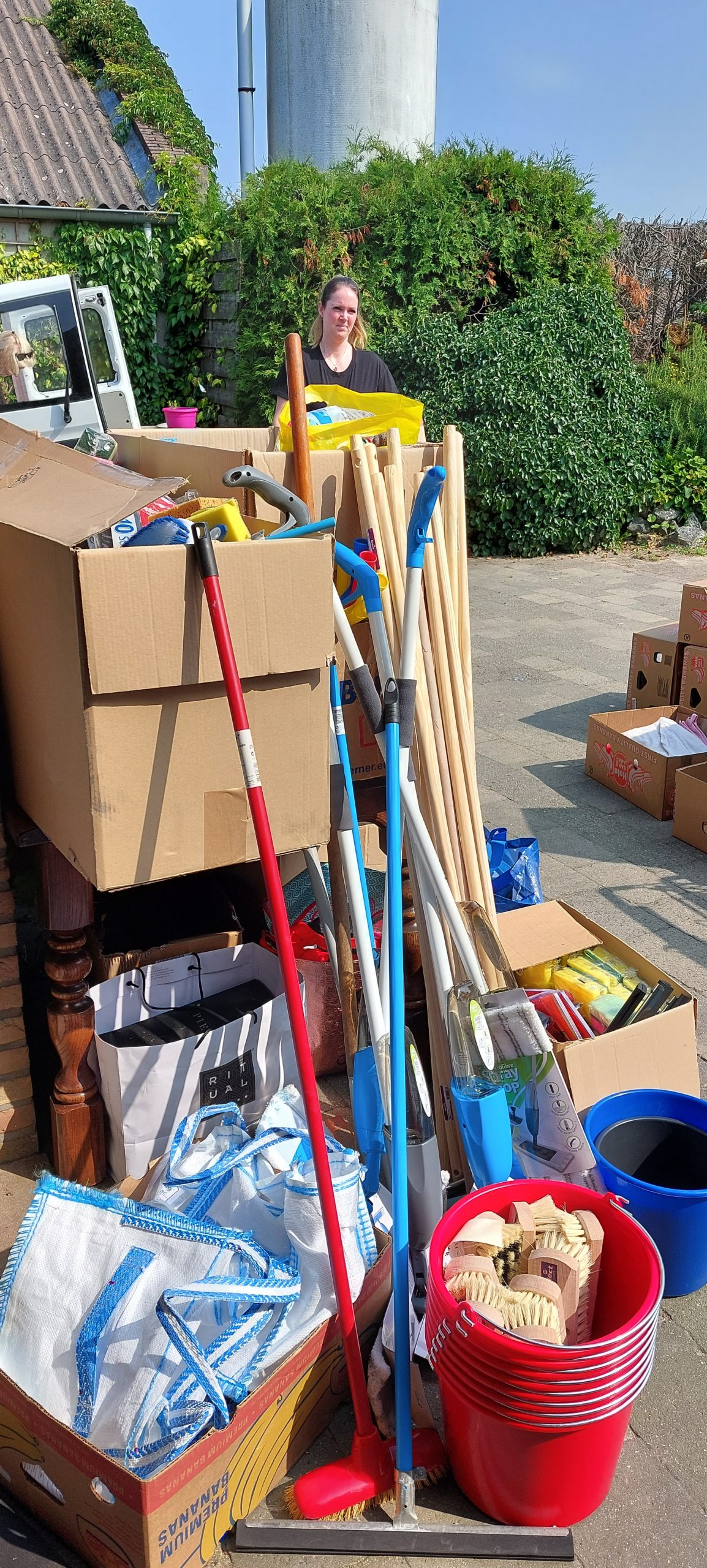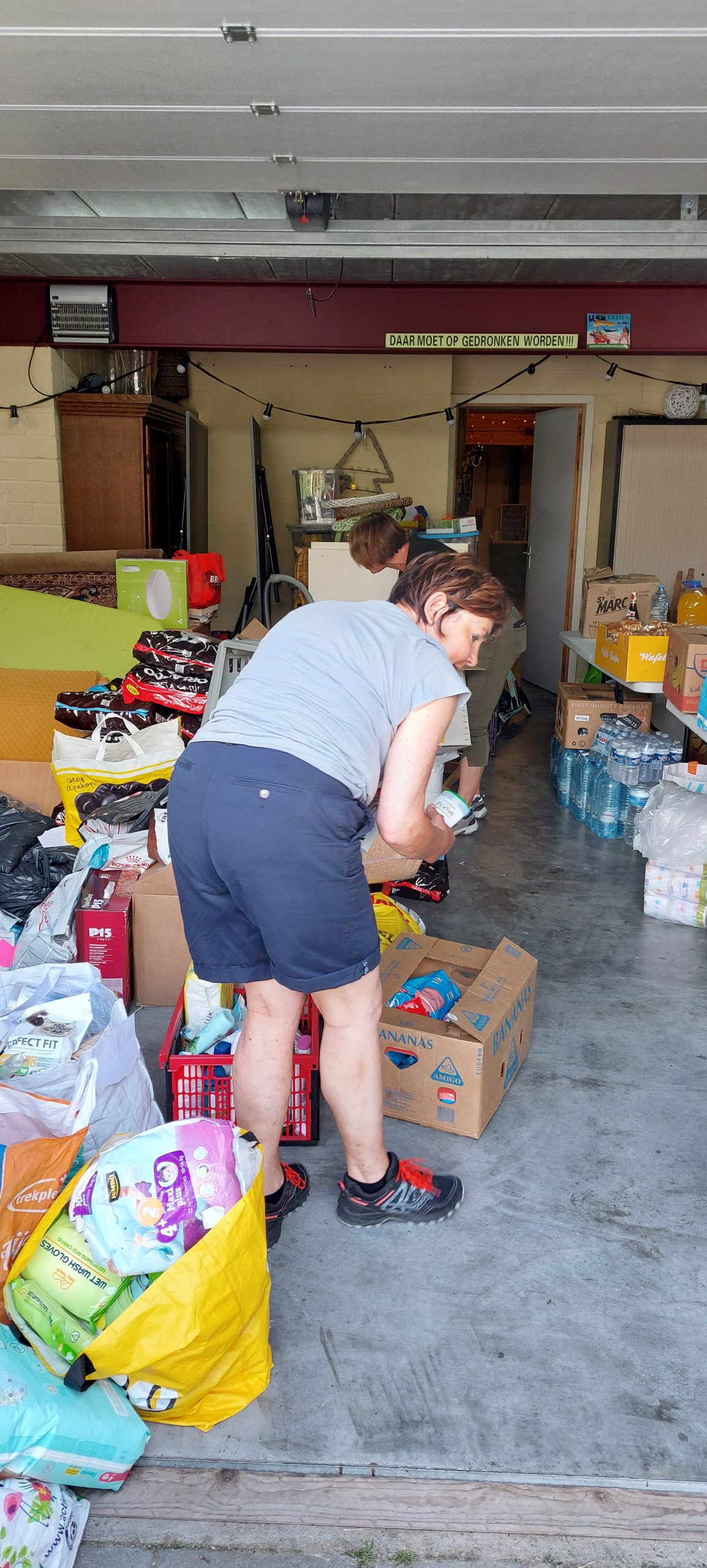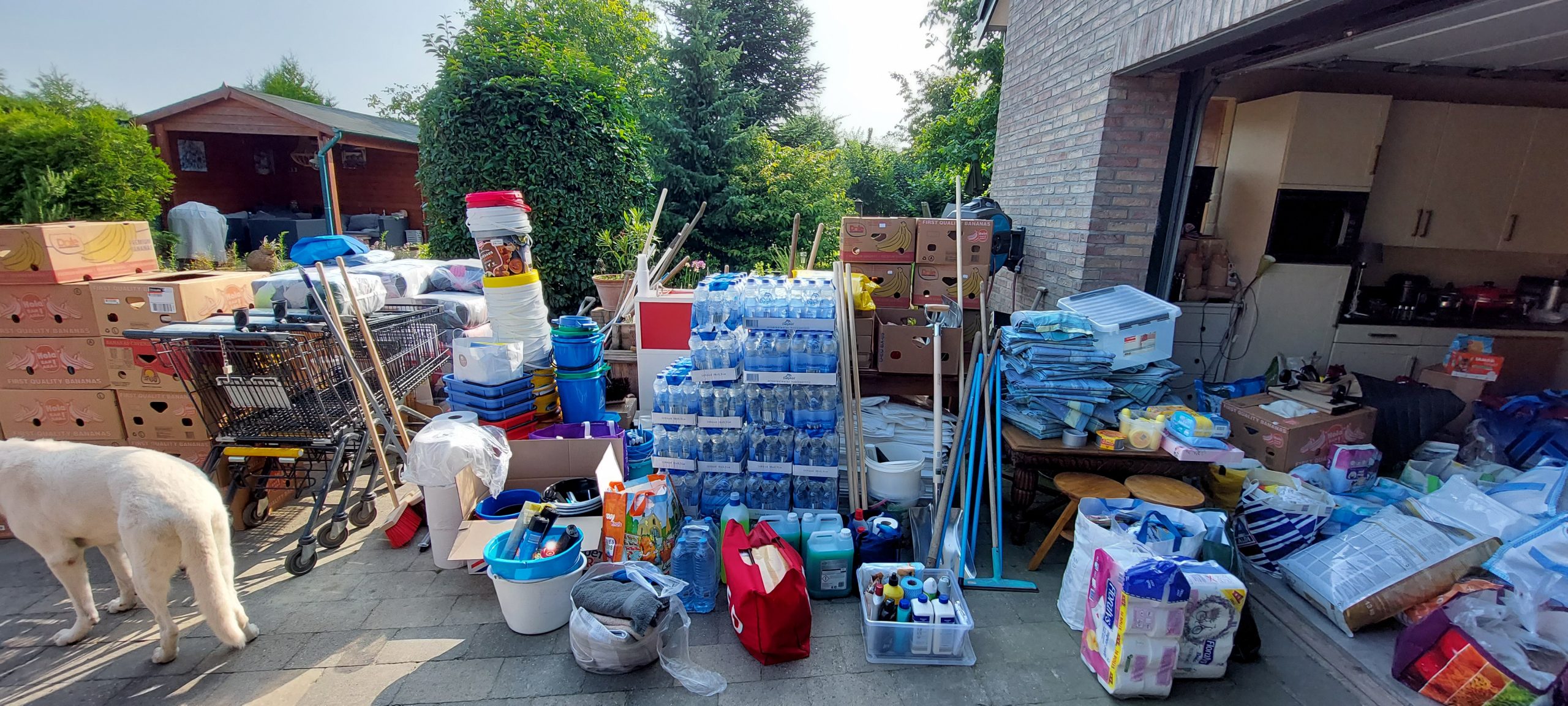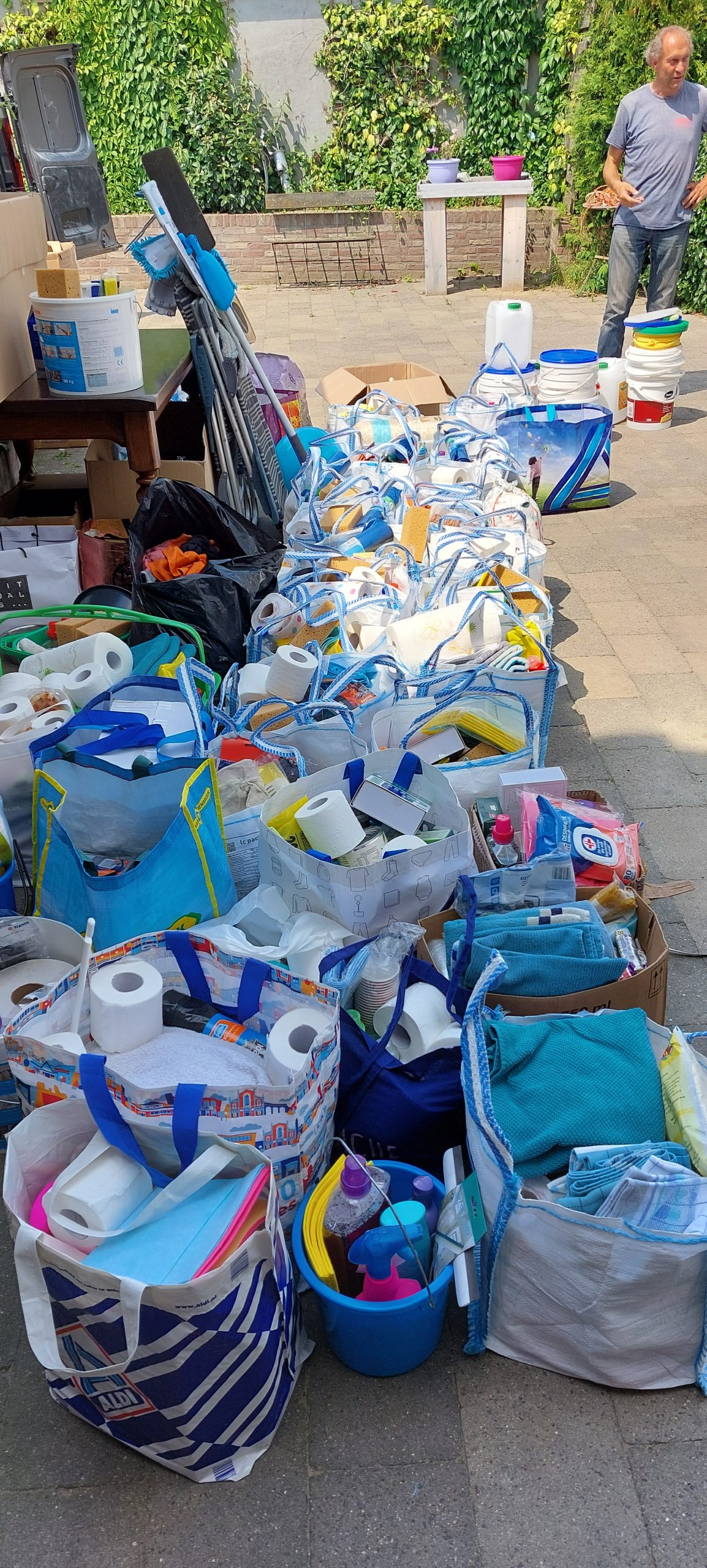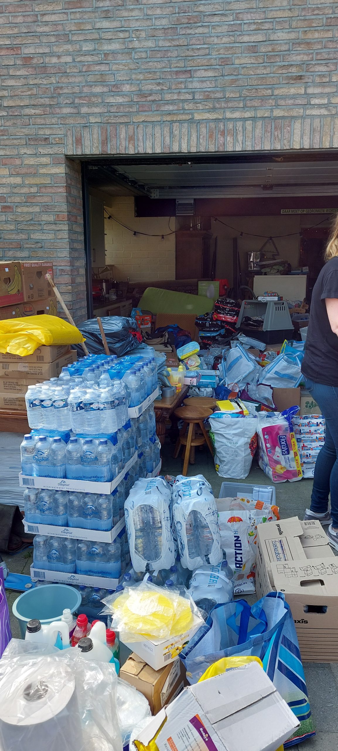 Vanmorgen nog maar iets eerder begonnen om bij Curfs Logistics in Gronsveld twee pallets op te halen met daarop afbakbroden en wafels. Dit werd gesponsord door Aron Bakeries in Gronsveld. Dit werd in de loop van de ochtend door ons afgegeven bij El Castillo in Valkenburg, die hiervan lunchpakketten heeft gemaakt voor de getroffen ondernemers in Valkenburg. Vanuit onze basis in Terblijt werden door twee dames uit Heerlen en uit Maastricht voedsel- en poetspakketten gemaakt. Deze pakketten met materialen werden weer uitgedeeld onder de bewoners van de wijk Oosterbeemd en centrum Valkenburg alsmede Westbroek en de Kleivelderweg. Ook werden tussendoor 2e-hands wasmachines gesponsord en uitgedeeld door het bedrijf Italiaander B.V. uit Eygelshoven. Wat een werk werd vandaag weer verzet door al die vrijwilligers. Sjiek om te zien! Als eerste kwam vanmorgen een Topper uit Utrecht. Hij had enorm veel poetsspullen vanuit Utrecht meegenomen en deze werden gelijk deze ochtend weer uitgedeeld in het centrum van Valkenburg en de omgeving van de Betsy Perklaan. Daarnaast heeft hij tussendoor nog een vloertje verwijderd en continue gewerkt. Hij heeft besloten om nog een nachtje te blijven. De jongen uit Utrecht werd weer bijgestaan door onze vliegende keep uit Landgraaf. Deze man heeft zowel in de houtzagerij gewerkt alsmede in Valkenburg bij het verwijderen van de vloer. Ook kwamen er drie pittige tantes uit Amersfoort. Zij hebben vanmorgen geholpen in de houtzagerij te Schin op Geul en aansluitend ook weer spullen uitgedeeld in het centrum van Valkenburg en Oosterbeemd. Tussen de bedrijven door kwam opeens een bus uit Terneuzen aangereden met daarin ook weer een vracht aan goederen. Deze vonden gretig aftrek in Oosterbeemd.