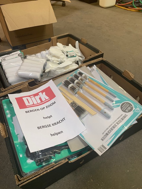 Gelukkig is de rest van het land de slachtoffers hier nog niet vergeten. Blijkt o.a. uit de verrassing vandaag uit Bergen op Zoom: niet alleen vrijwilligers van daar zijn er al wéér en nog steeds om te helpen, ook de vestiging van DIRK uit die plaats doneerde schildersspullen (kwasten, kitspuiten, verfrollers, handschoenen). Hier ontstaat enorm veel behoefte aan. Op bijgevoegde foto zie je wat op dit moment de voornaamste vraag is.