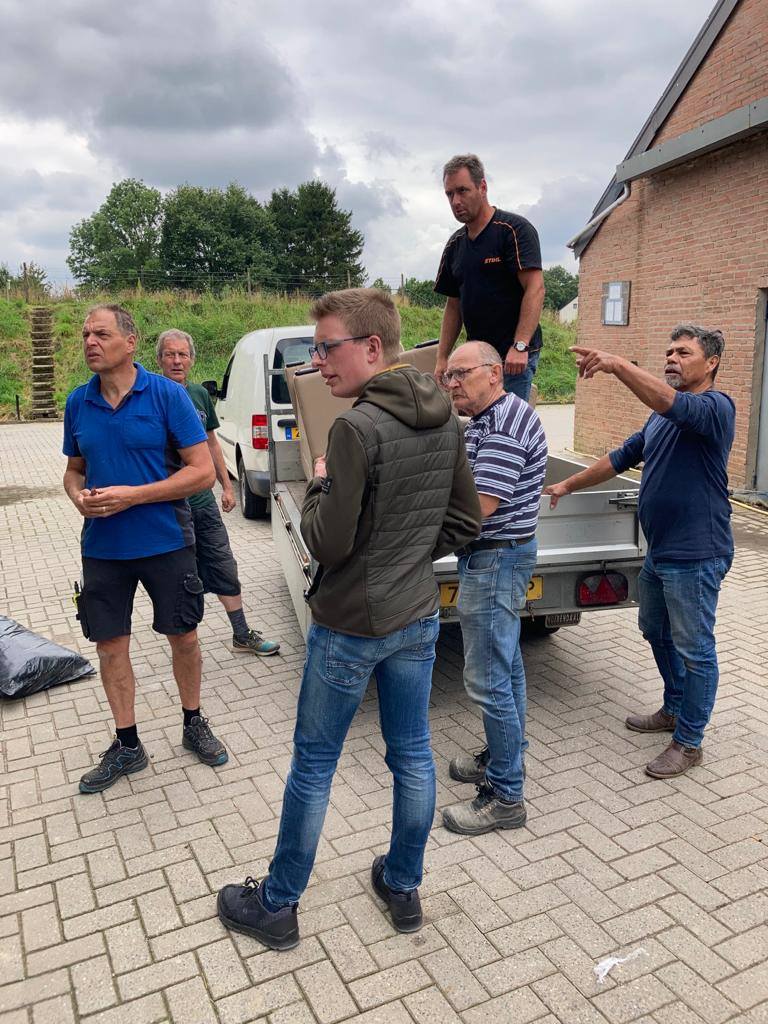 Vandaag grote verhuizing van spullen die eerder met een enorme vrachtwagen in een koelcel van een boerderij omgeving Valkenburg waren gelost. Meubels, kleding, speelgoed, beddengoed, enz. enz. De eerdere oproep om handjes en vervoer heeft een geweldig resultaat opgeleverd: meerdere grotere aanhangers, busjes en een vrachtwagen die door vader en zoon van een transportbedrijf gratis ter beschikking werd besteld. De koelcel is leeg, de meeste zaken staan al in de loods aan de Valkenburgerstraat, morgen nog de laatste pallets naar wat andere plekken. Een diepe buiging voor de rijders en sjouwers, ’t was heavy !!