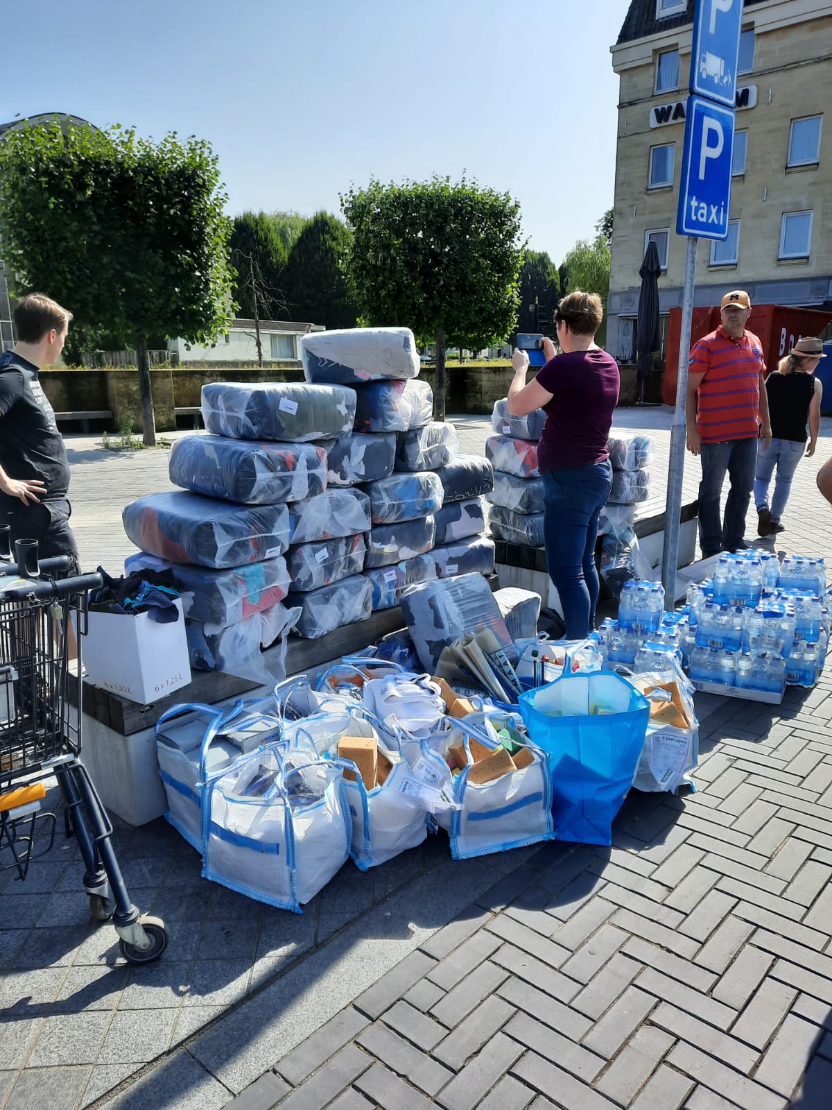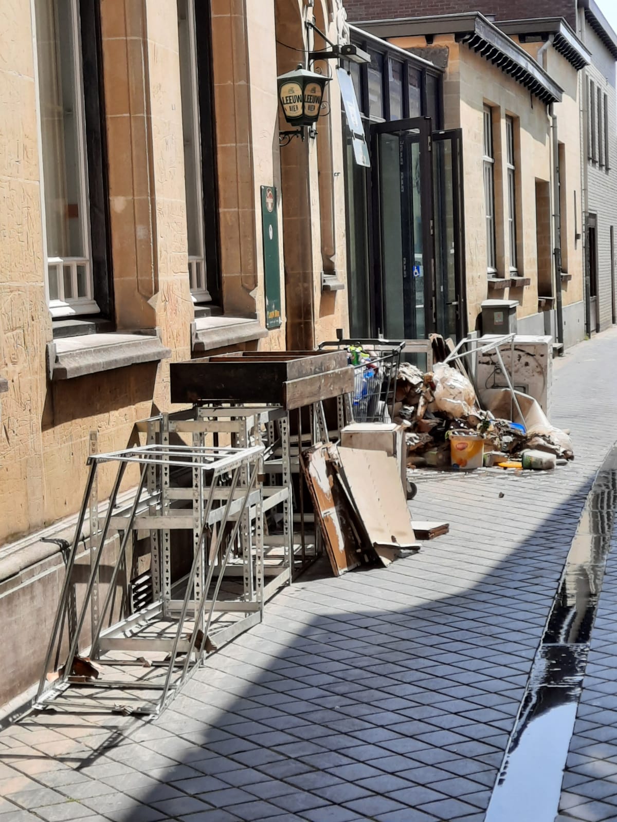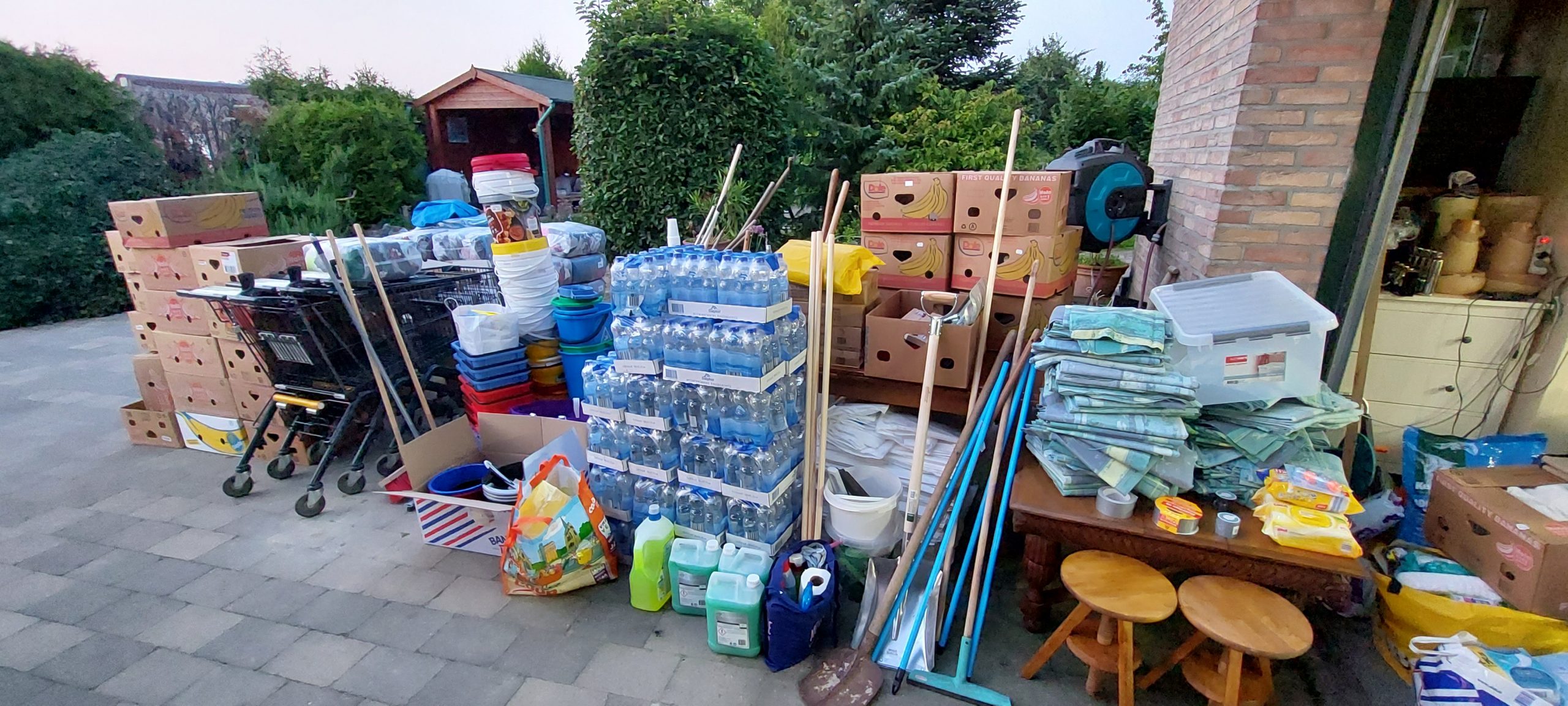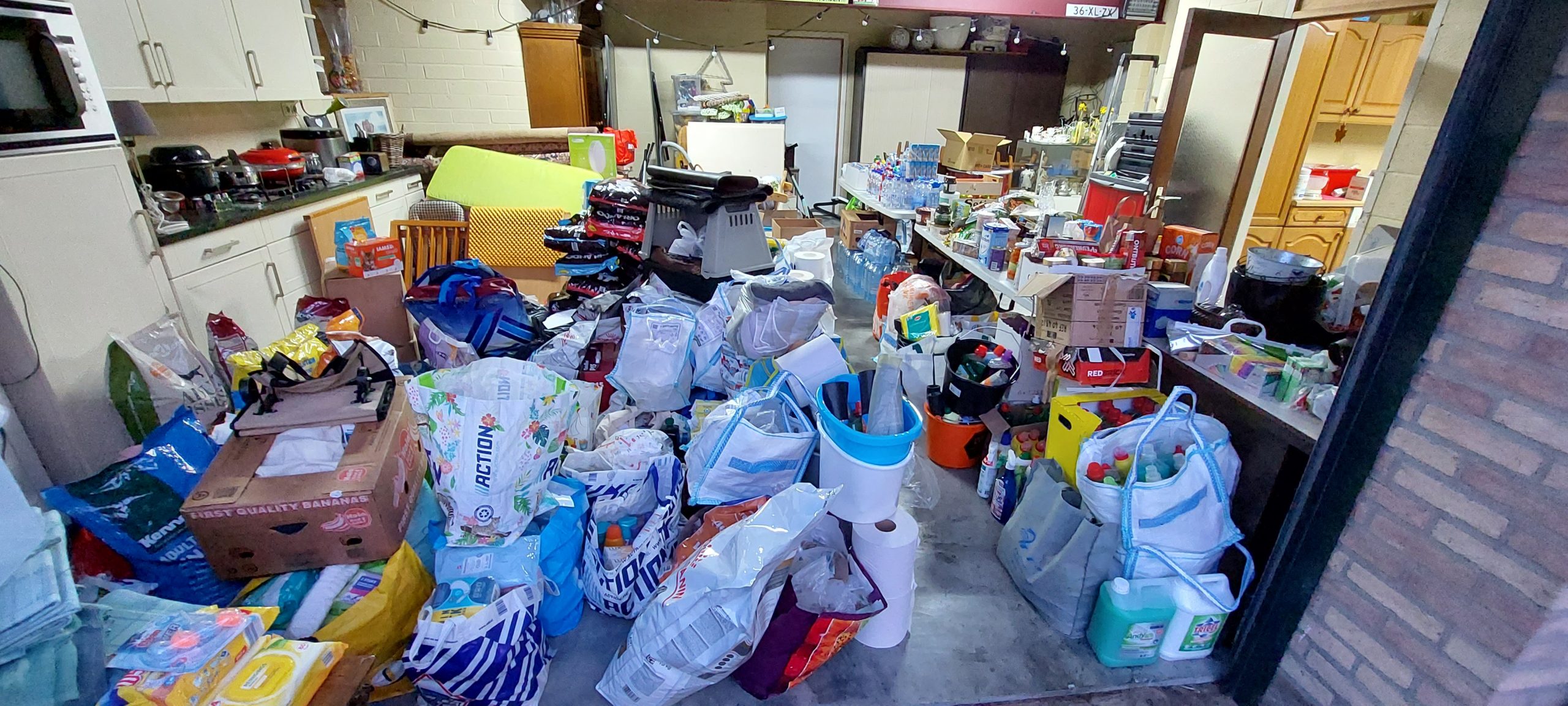 En ook vandaag werd er wederom keihard gewerkt door heel veel vrijwilligers. Zo werd het studententeam Woord en Daad uit Heerlen ingezet in Brommelen en drie toppers uit Groesbeek werden ingezet in Valkenburg Centrum. Daarnaast werden door veel andere vrijwilligers gewerkt in Schin op Geul en op onze locatie in Terblijt werden heel veel poetsspullen, water en dierbenodigdheden afgeleverd door mensen uit Arnhem. Van heel veel bedrijven en particulieren uit Arnhem, Eden en Oosterbeek werden goederen ontvangen. BurgersZoo, Lidl, Installatiebedrijf uit Beumen, Petsplace en nog heel veel anderen. Poetsspullen van Asito en door de MOSA Maastricht werden drie pallets met verhuisdozen gesponsord. Ook uit het Westland kwam Andre weer op en neer gereden met veel poetsspullen. Het wordt steeds moeilijker om iedereen op te noemen uit angst dat je iemand vergeet. Er zijn zoveel mensen uit Nederland die willen helpen en die al geholpen hebben. Dat geeft een enorm gevoel van verbondenheid. Morgen gaan we weer verder en we houden jullie op de hoogte!